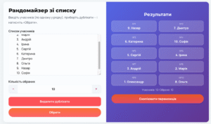▶️ Натисніть кнопку “Обрати “, і сервіс випадково визначить переможців зі списку.