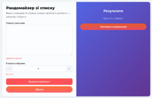 Даний інструмент працює надзвичайно просто: достатньо додати список учасників, вказати кількість переможців — і система автоматично зробить випадковий вибір без людського втручання [5]. Інтуїтивно зрозумілий інтерфейс робить цей процес доступним навіть для користувачів без технічних навичок.