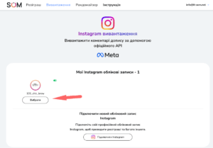 🔹 Выберите нужный аккаунт Instagram, из которого нужно выгрузить комментарии.